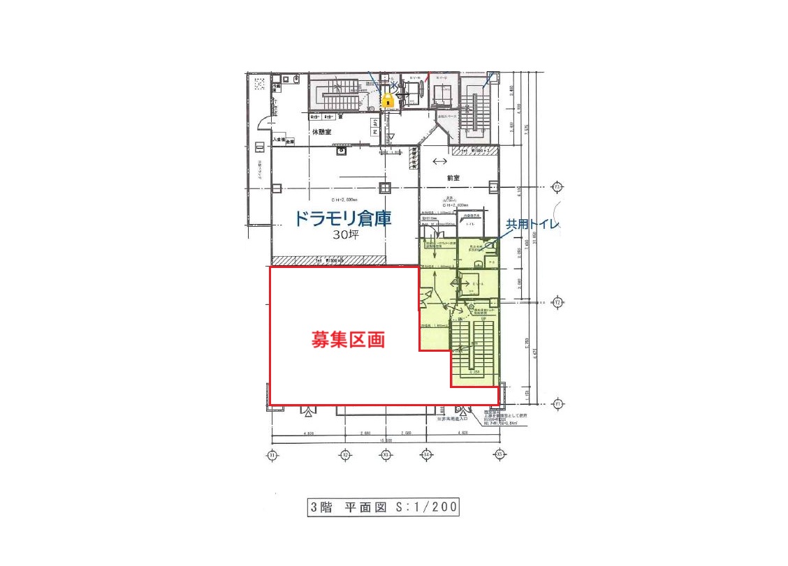 | 備考 | ※スケルトン渡し ※共用部に身障者用お手洗いあり ※区画内の水回りの引込みは要協議 |
